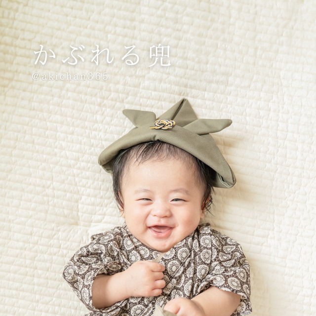 サイズが選べる!かぶれる兜 ー帆布 くすみカラーー緑、カーキ、ベージュ、グレー、正月 こどもの日 初節句 七五三 布兜100日祝い ハーフバースデー 1歳 誕生日 犬 猫 うさぎ ベビークラウン 端午の節句