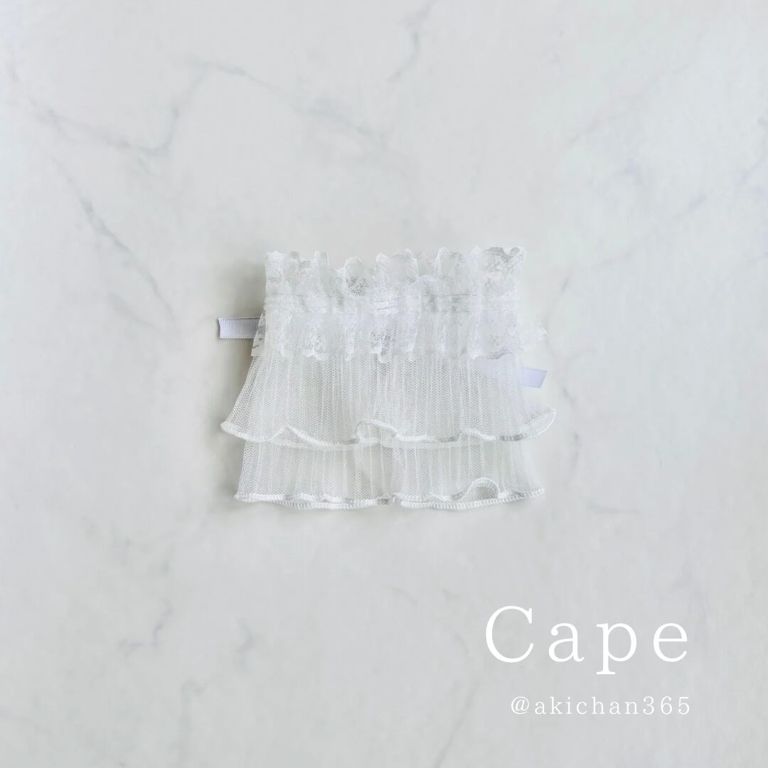宝石のようなキラキラクリスタルがポイントのリボン2つと透明感のあるホワイトレースのシンプルなケープをセットにしました!