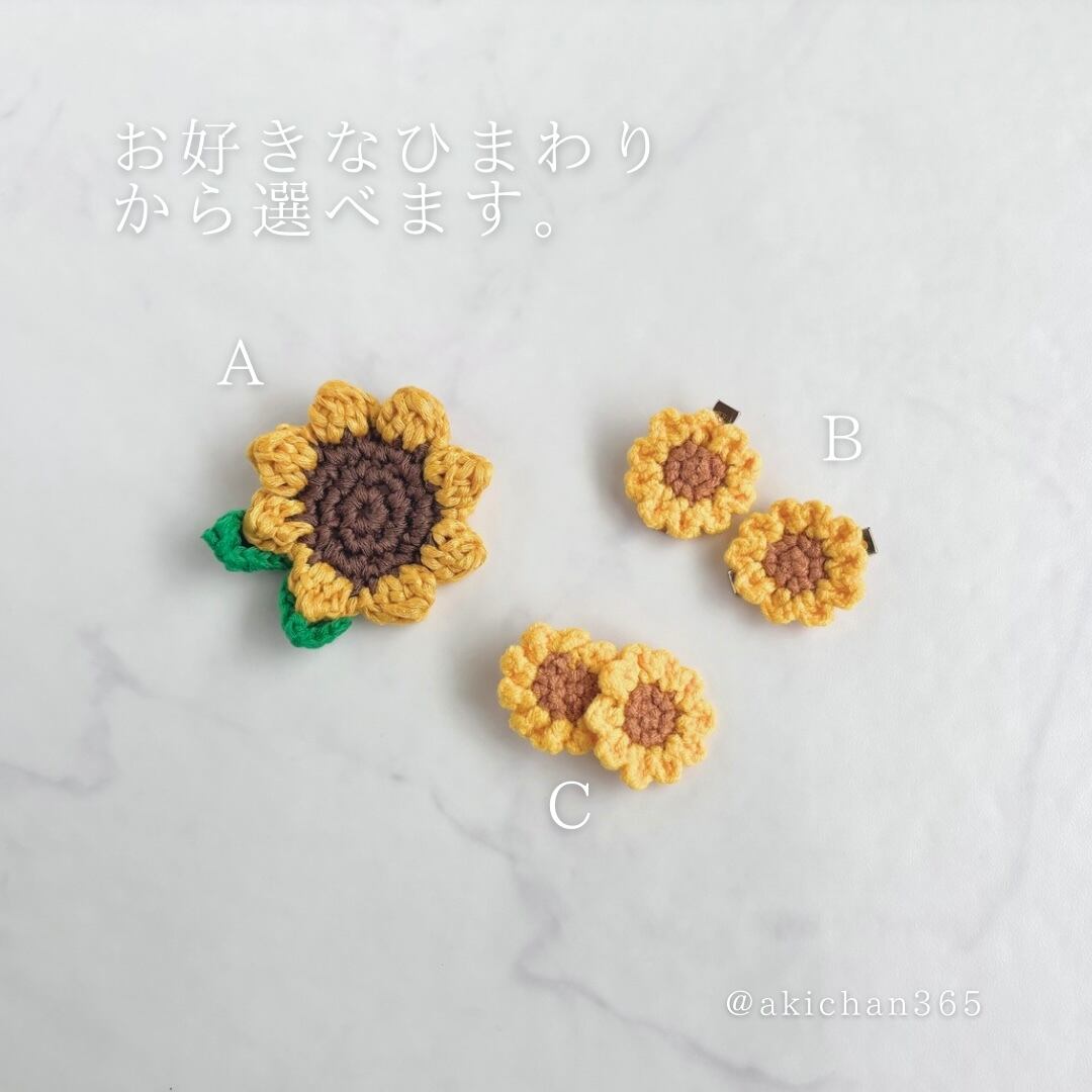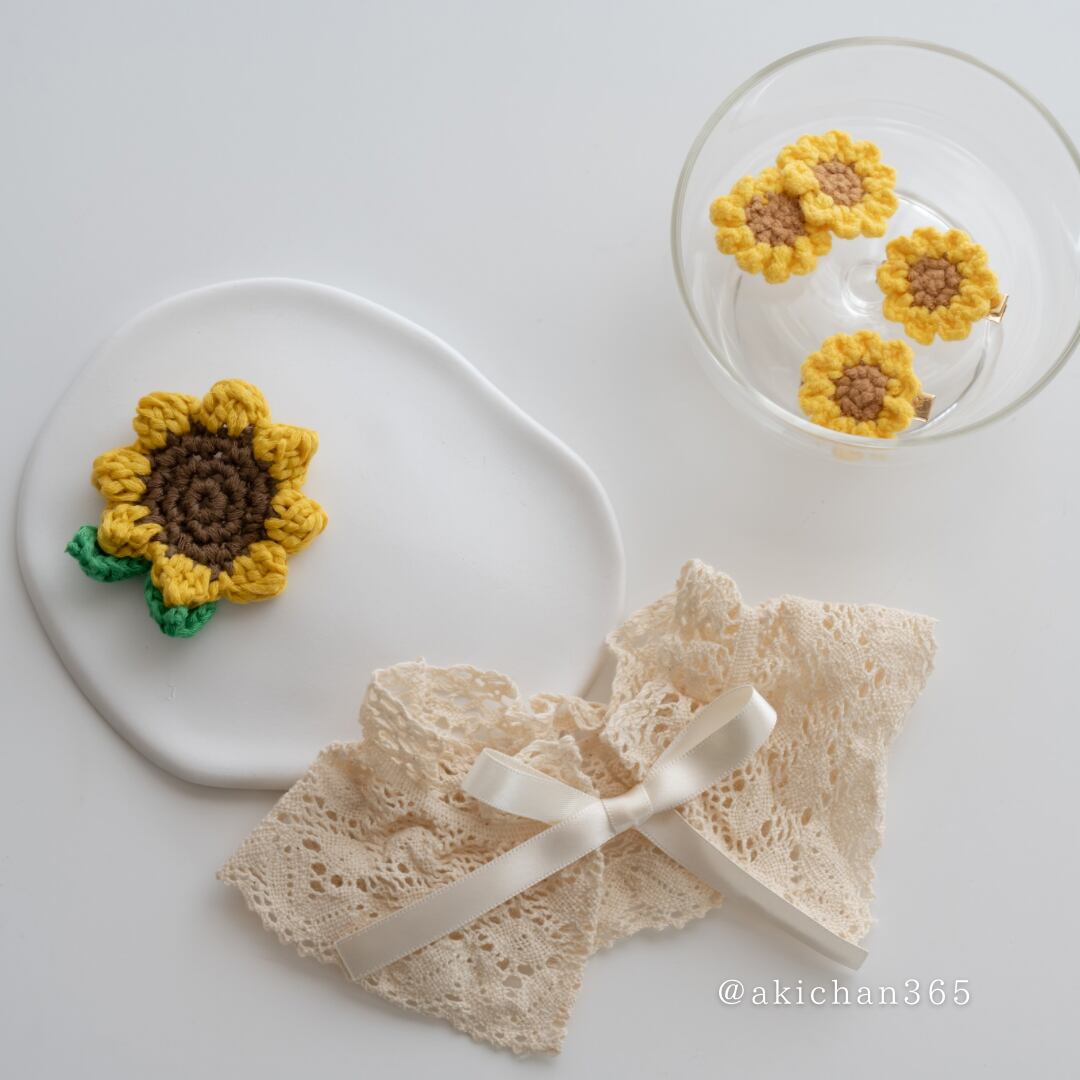 ひまわりの後ろにはやっとこピンが付いているので、ケープに付けたり、ヘアアクセサリーとしても付けられますよ♪