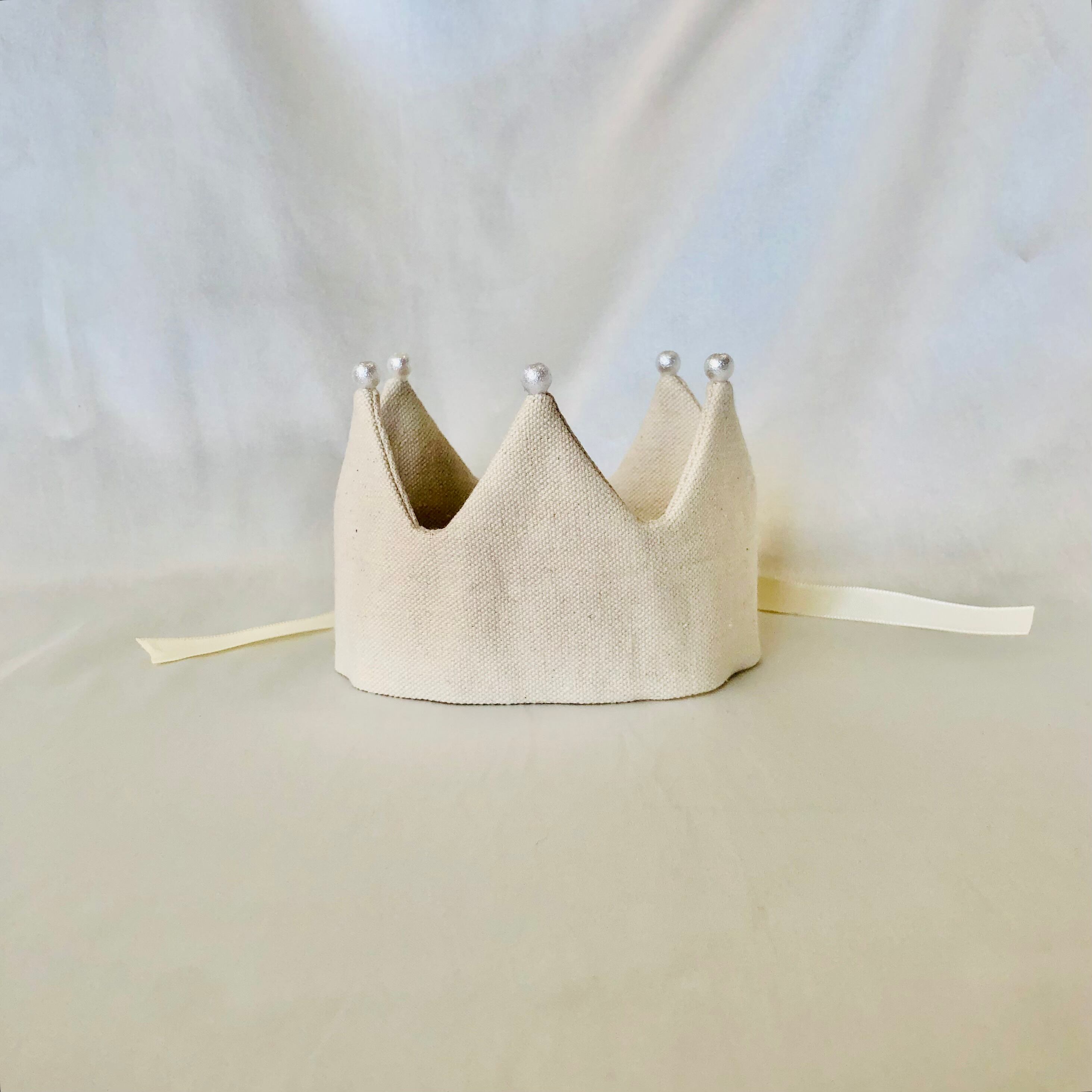ベビークラウン 生成り《100日、記念日、誕生日、ハーフバースデー、ニューボーンフォト、1歳、あご紐、王冠》