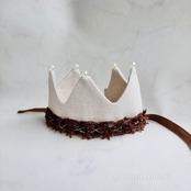 ベビークラウン 生成り ブレード《100日、記念日、誕生日、ハーフバースデー、ニューボーンフォト、1歳、あご紐、王冠》