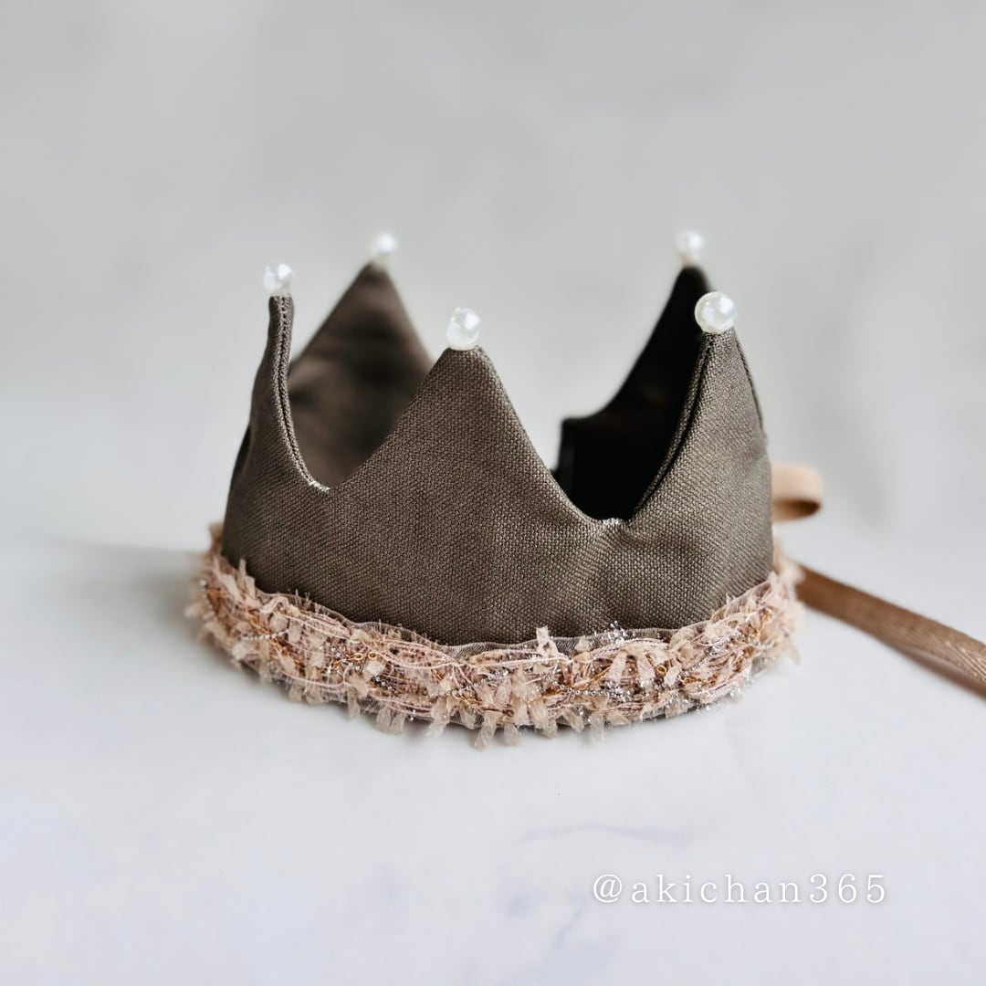 ベビークラウン くすみ(サファリ) ブレード《100日、記念日、誕生日、ハーフバースデー、ニューボーンフォト、1歳、あご紐、王冠》