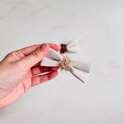 やわらかな生成り生地にツイード調のアクセントを加えた、ナチュラルで上品な蝶ネクタイ。