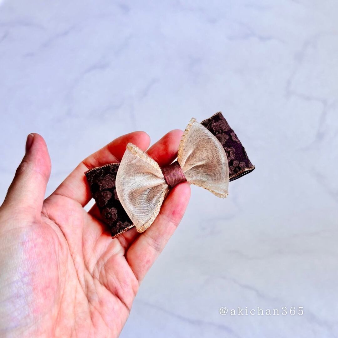 上品なレースとオーガンジーを重ねた、クラシカルな雰囲気のリボン。