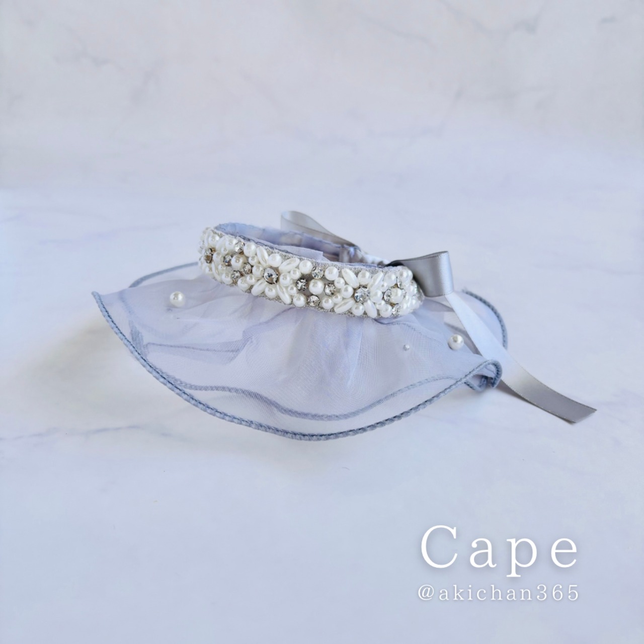 パールジュエリーリボン&シフォンケープセット(つけ襟、ケープ、犬、猫、うさぎ、誕生日、記念日)