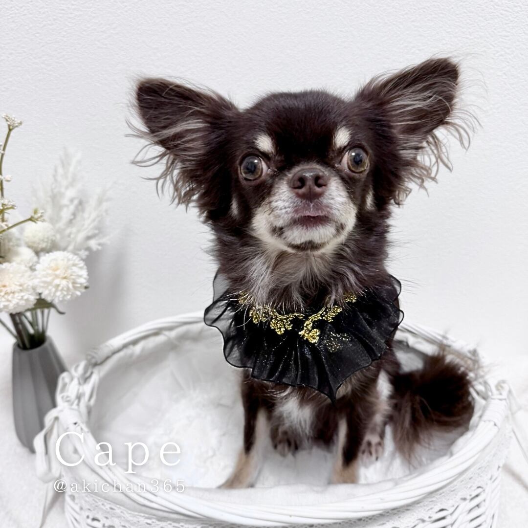 ゴールド刺繍のブラックケープ(つけ襟、ケープ、犬、猫、うさぎ、誕生日、記念日)