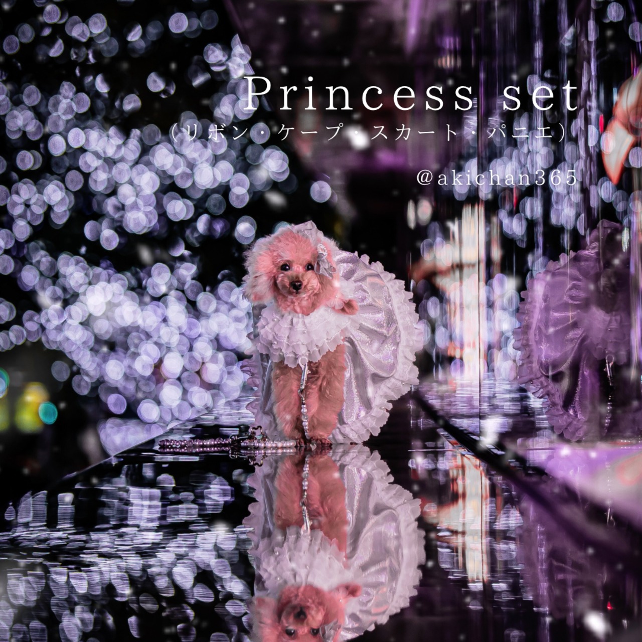 きらめくプリンセス4点set(リボン・ケープ・スカート・パニエ)【犬服、猫服、誕生日、記念日、クリスマス、冬】