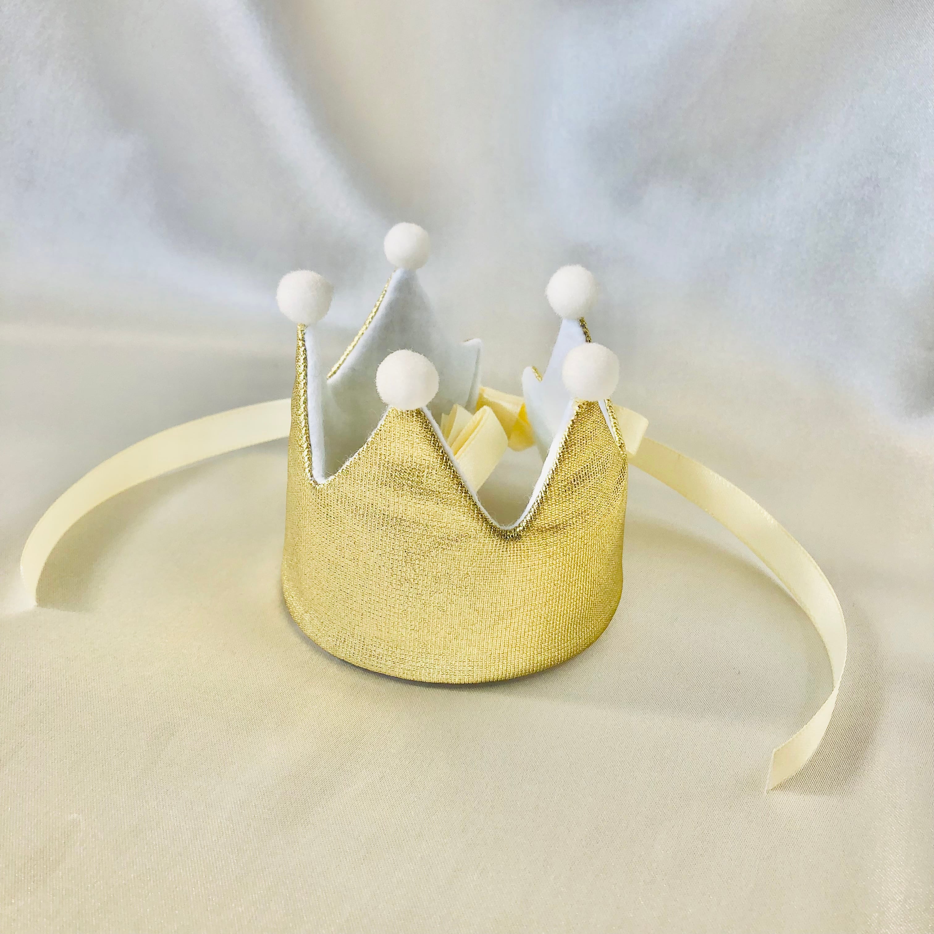 ミニ バースデークラウン 淡ゴールド×ホワイト ミニポンポン