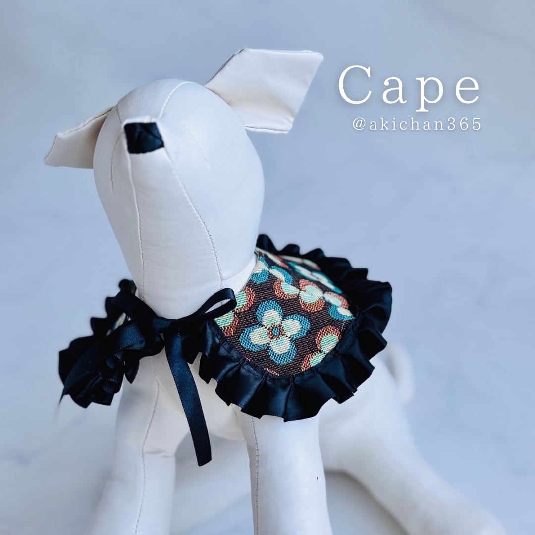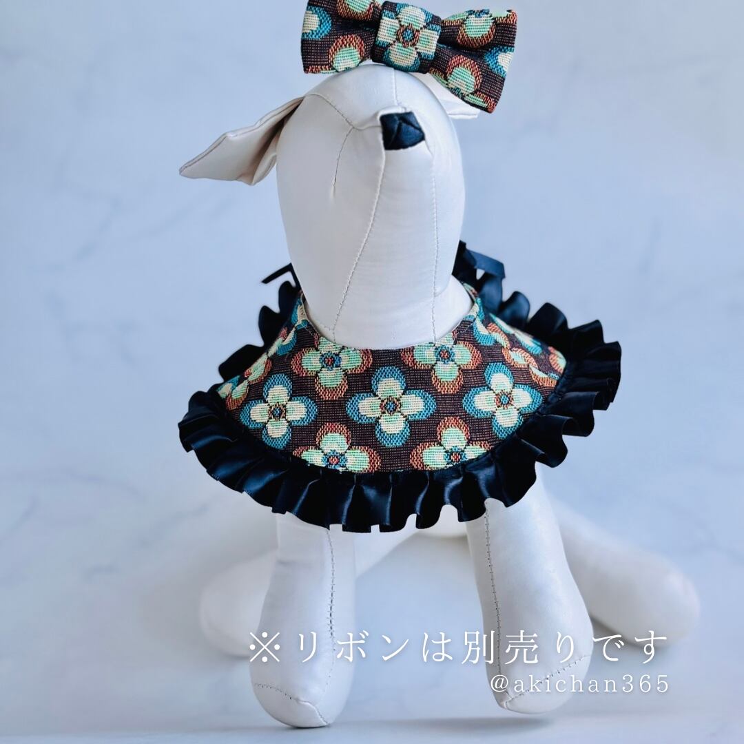 レトロフラワー柄フリルケープ|犬 猫 ペット用|記念日・撮影用アクセサリー/付け襟 / レトロ / クラシカル