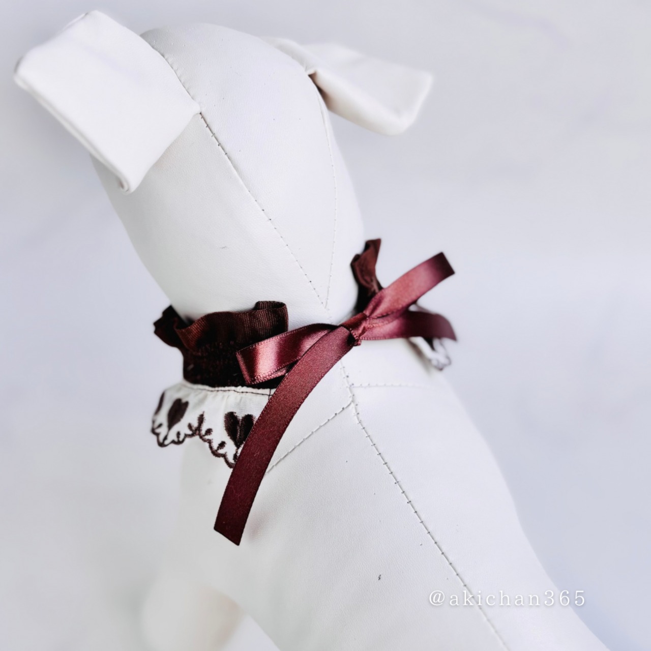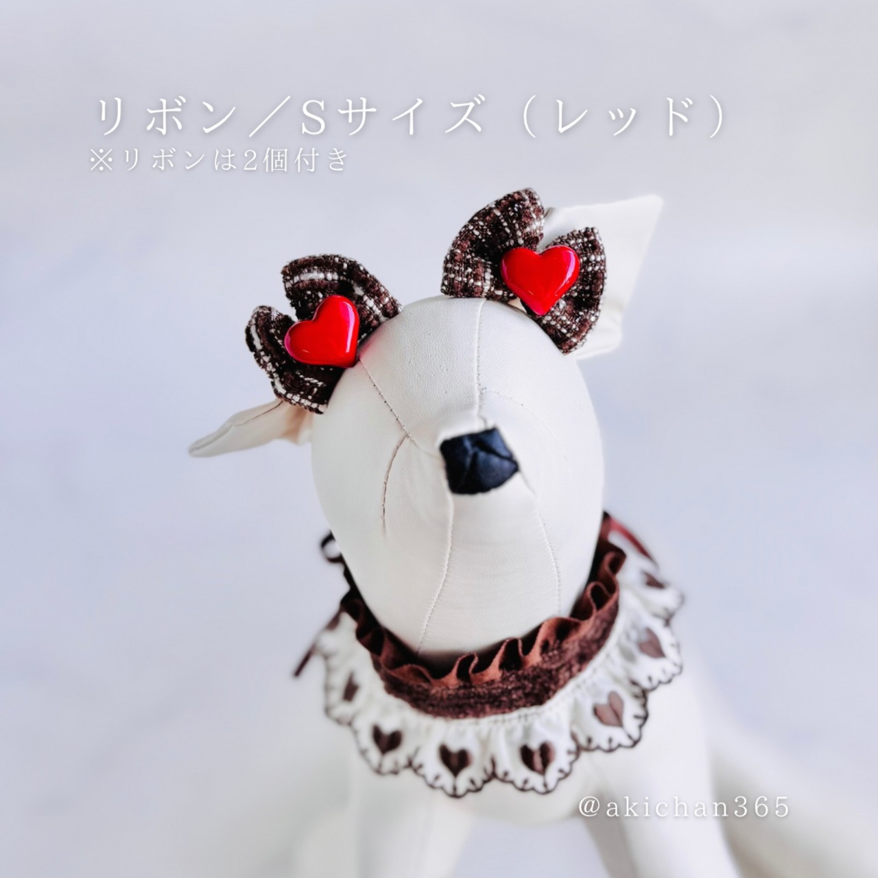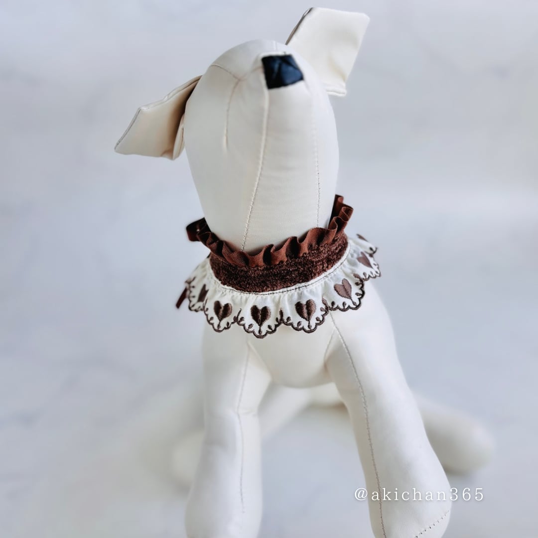 ハート刺繍レースのフリルケープ&ツイードリボンセット|犬 猫 ペット用|記念日・撮影用アクセサリー、バレンタイン