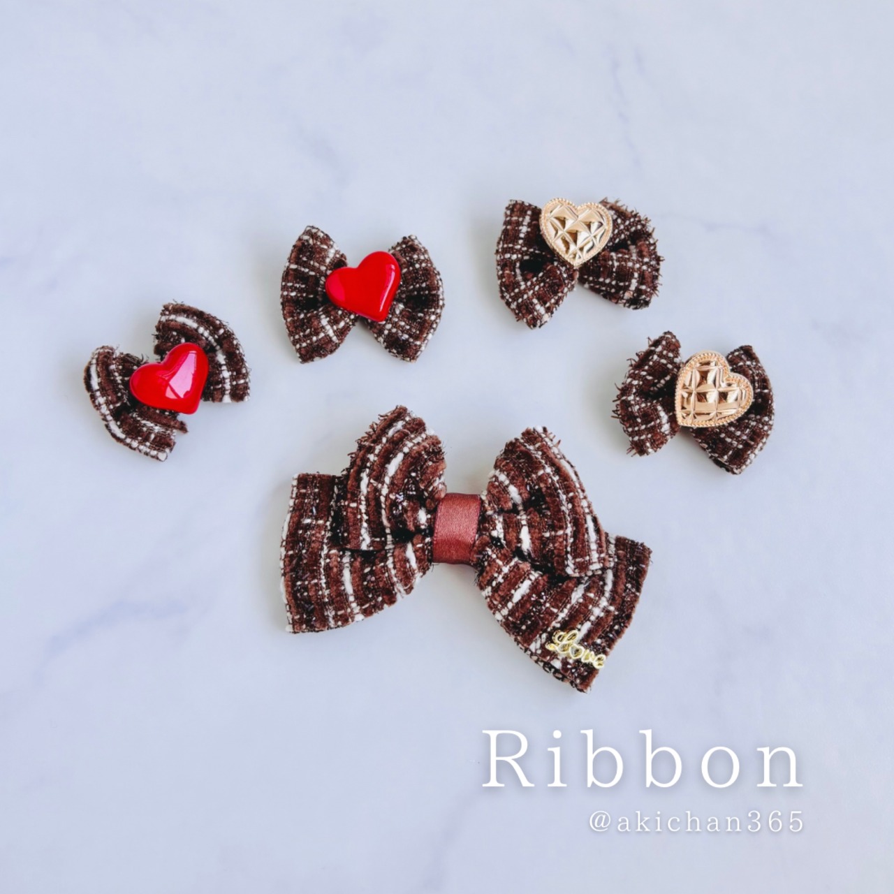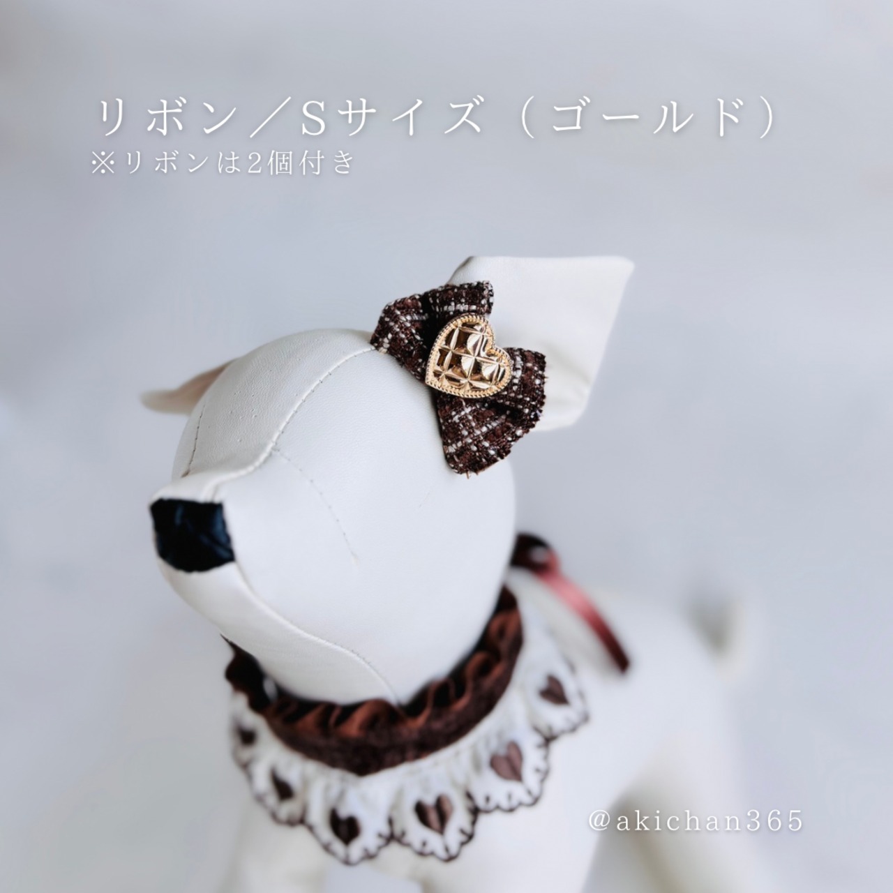 チョコレートカラーのツイードリボンセット|犬 猫 ペット用|記念日・撮影用アクセサリー、バレンタイン