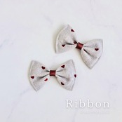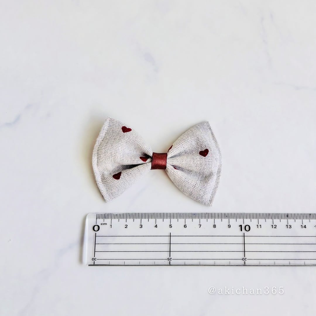 ハーフリネンのハート柄リボン(2個セット)|犬 猫 ペット用|記念日・撮影用アクセサリー、バレンタイン