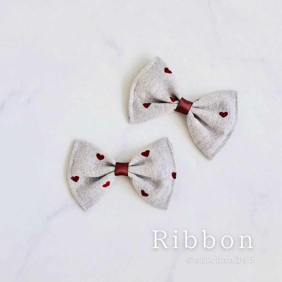 バレンタインにぴったりの、ハート柄リボンアクセサリーのお得な2個セットです