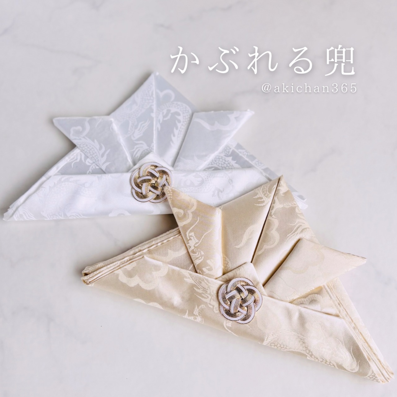 かぶれる兜【白銀、シルクベージュ】正月 こどもの日 初節句 七五三 布兜100日祝い ハーフバースデー 1歳 誕生日
