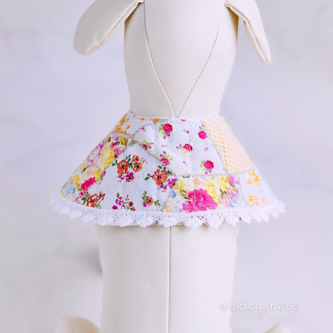 お花畑パッチワークのフリルケープ 《ペット用、犬用、ネコ用、誕生日》