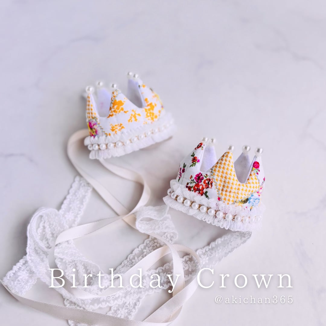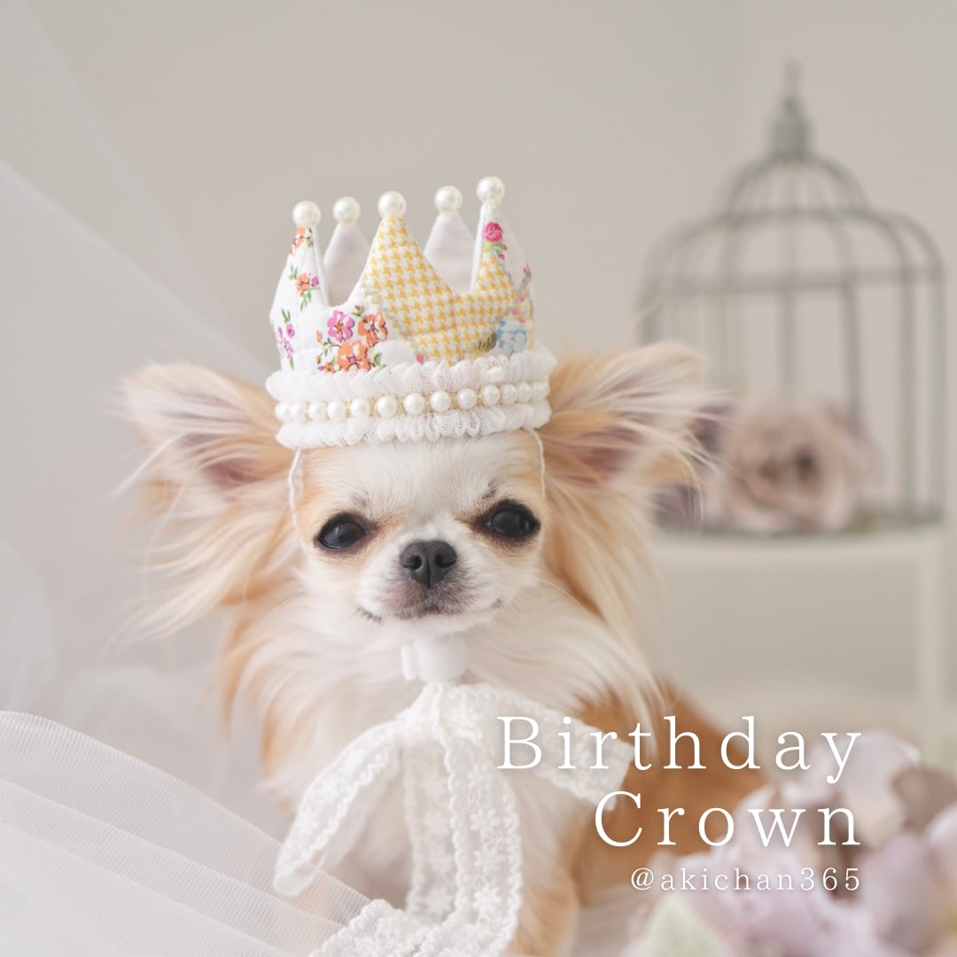 お花畑パッチワークのバースデークラウン 《記念日、誕生日、ペット用、猫、犬、王冠》