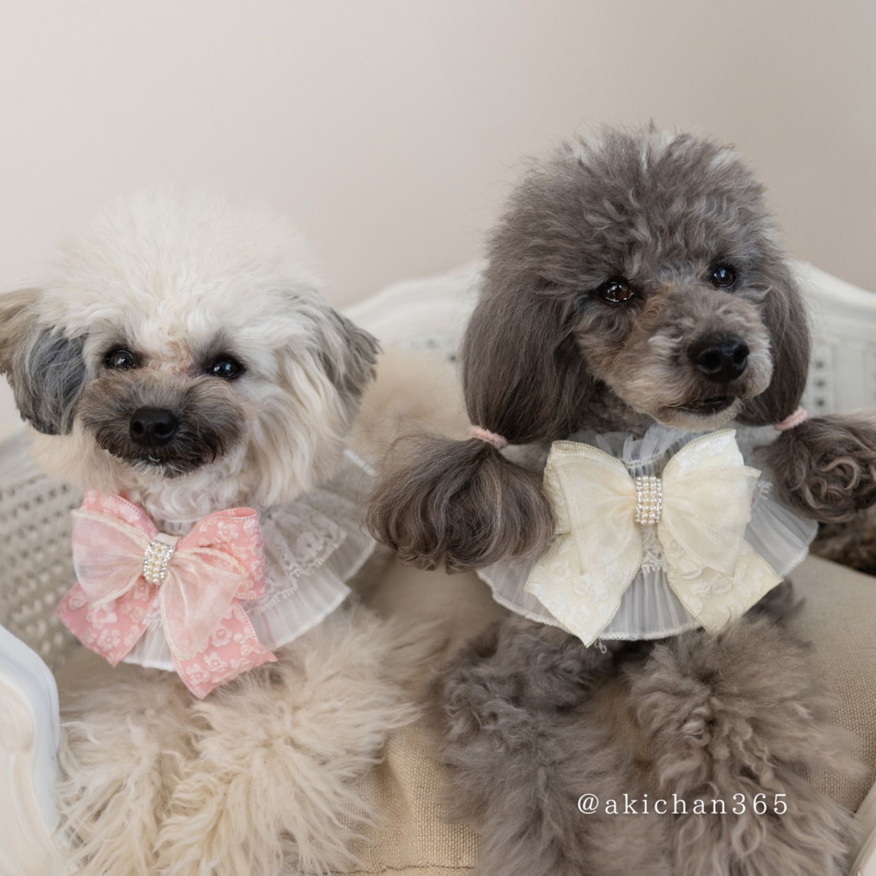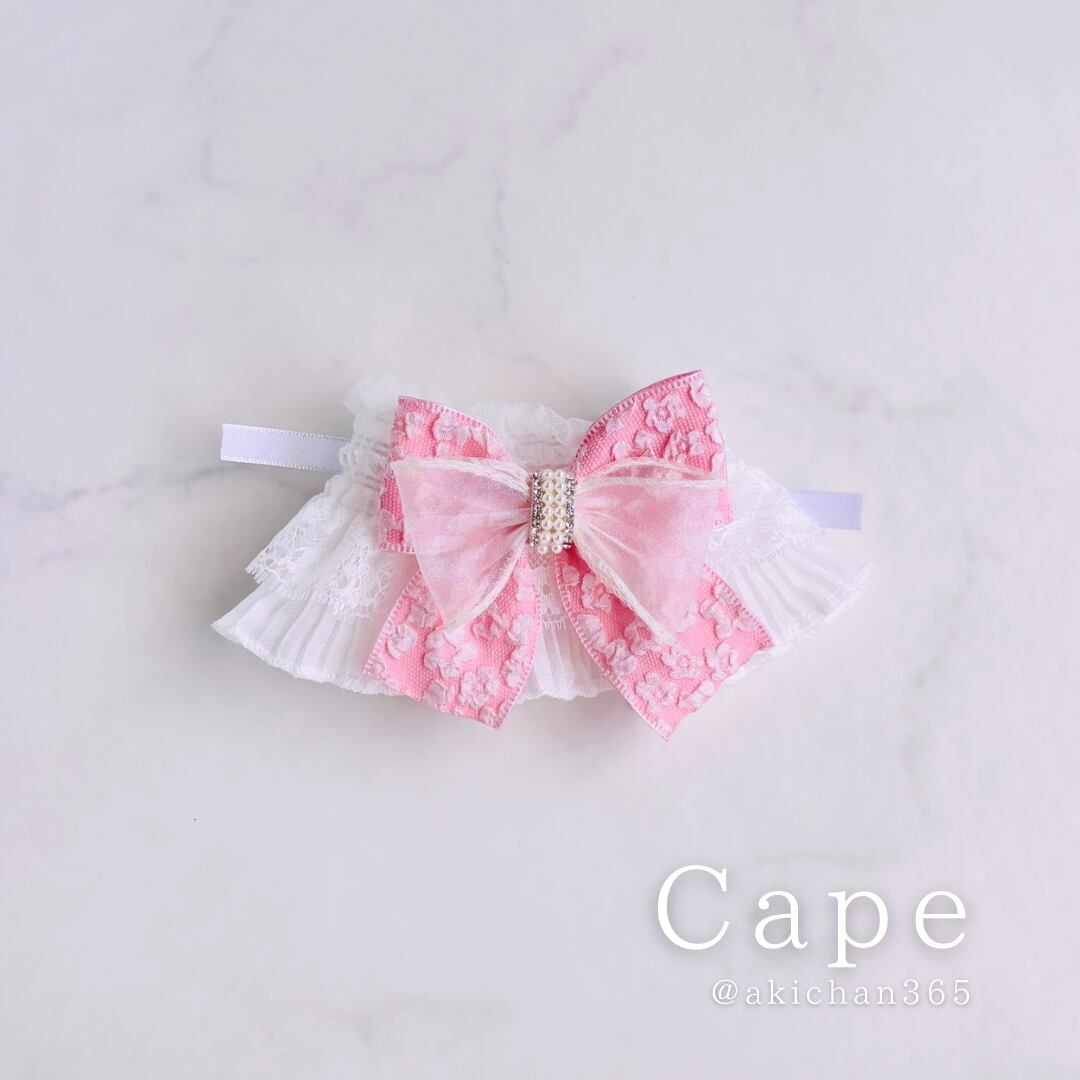 大きめジャガードリボン付きケープ(ピンク、アイボリー、ブルー)|犬 猫 ペット用|記念日・撮影用アクセサリー