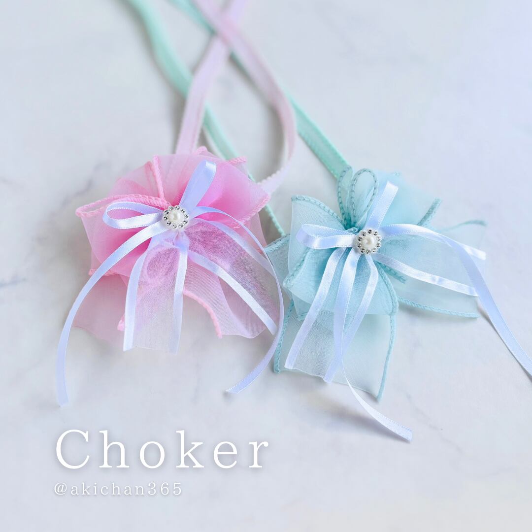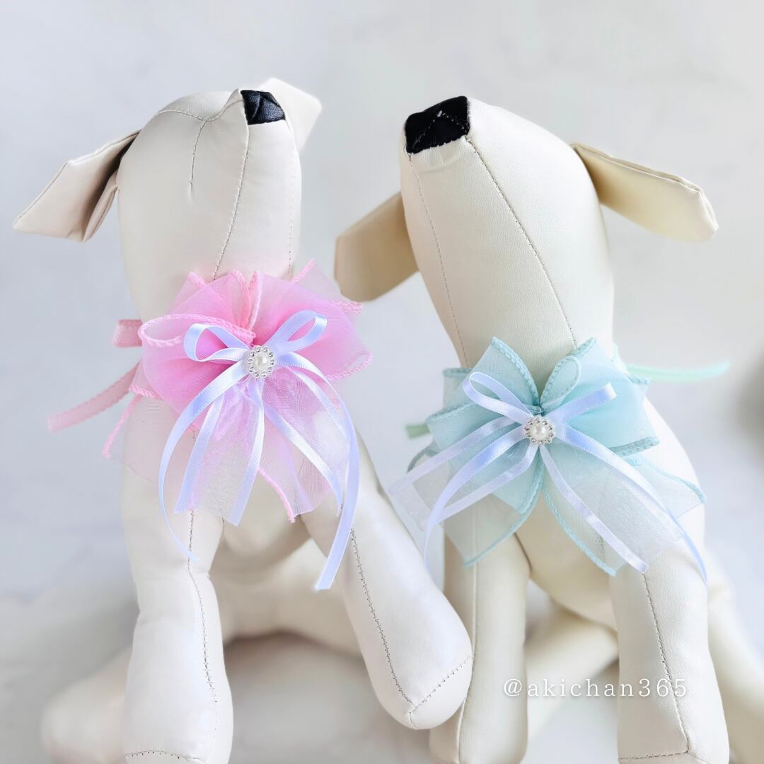 【パステルオーガンジーチョーカー】犬用ヘアアクセサリー/猫用リボン/トリミングリボン/ペット用髪飾り