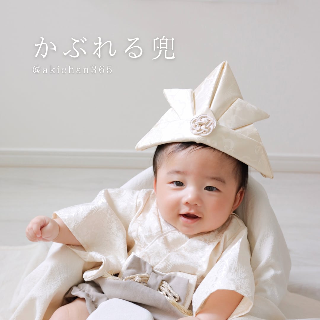 かぶれる兜【白銀、シルクベージュ】正月 こどもの日 初節句 七五三 布兜100日祝い ハーフバースデー 1歳 誕生日