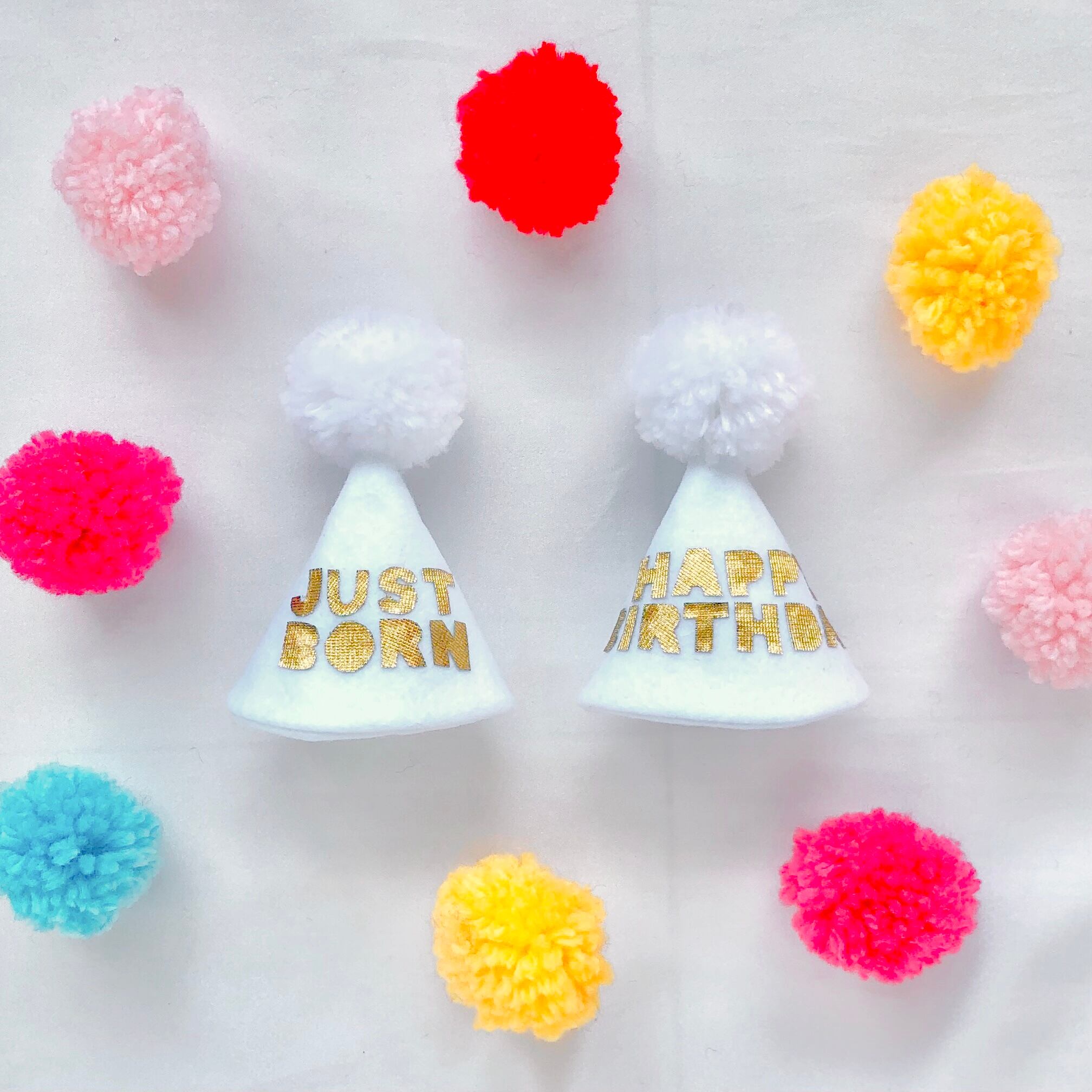 カラフル ミニ パーティーハット ホワイト メッセージ(ベビークラウン ニューボーンフォト 100日 ハーフバースデー 誕生日 犬 猫 うさぎ)