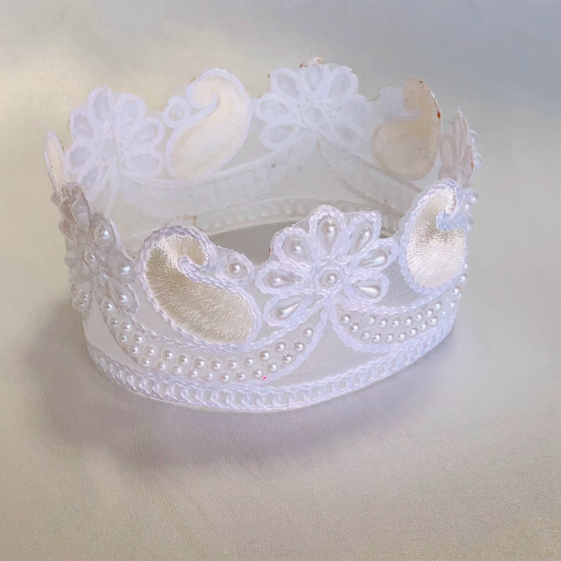 パールクラウン あご紐付(s)《ベビークラウン、ティアラ、100日、記念日、誕生日、ハーフバースデー、ニューボーンフォト、1歳、王冠、冠》