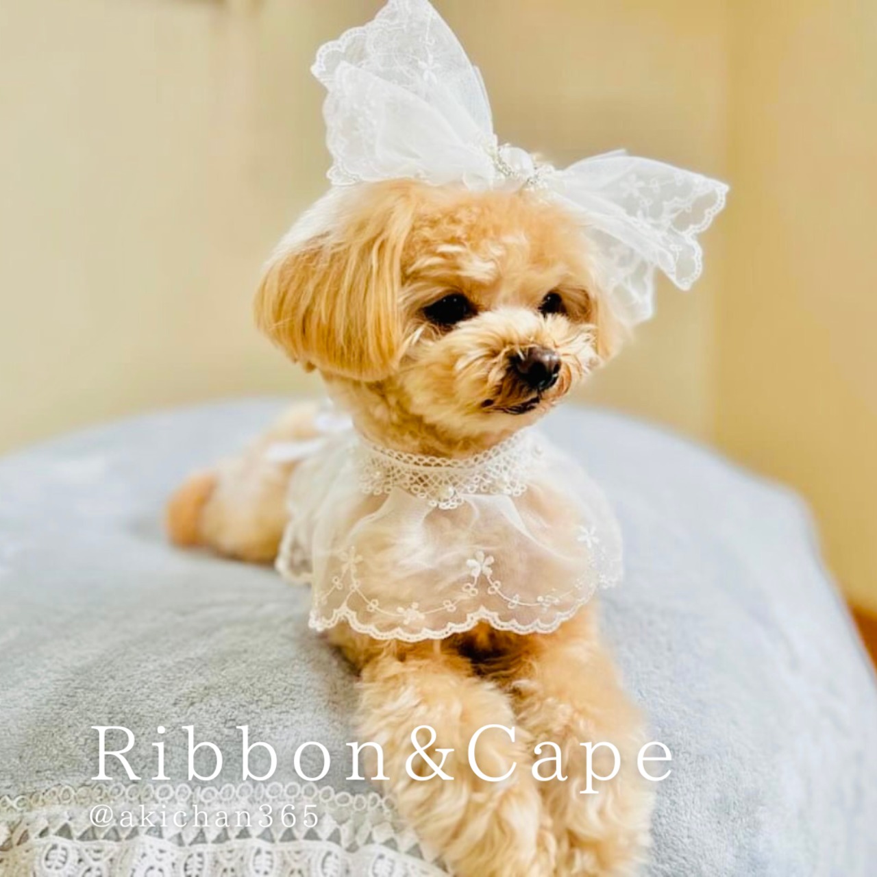 リボンとケープのセット(誕生日、つけ襟、スタイ、犬、猫、うさぎ、ベビークラウン、クリスマス、ハロウィン、バレンタイン