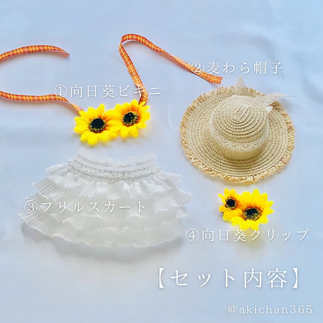 おでかけ向日葵set(100日祝い、出産祝い、バースデー、犬、夏、ビキニ、スカート、麦わら帽子)