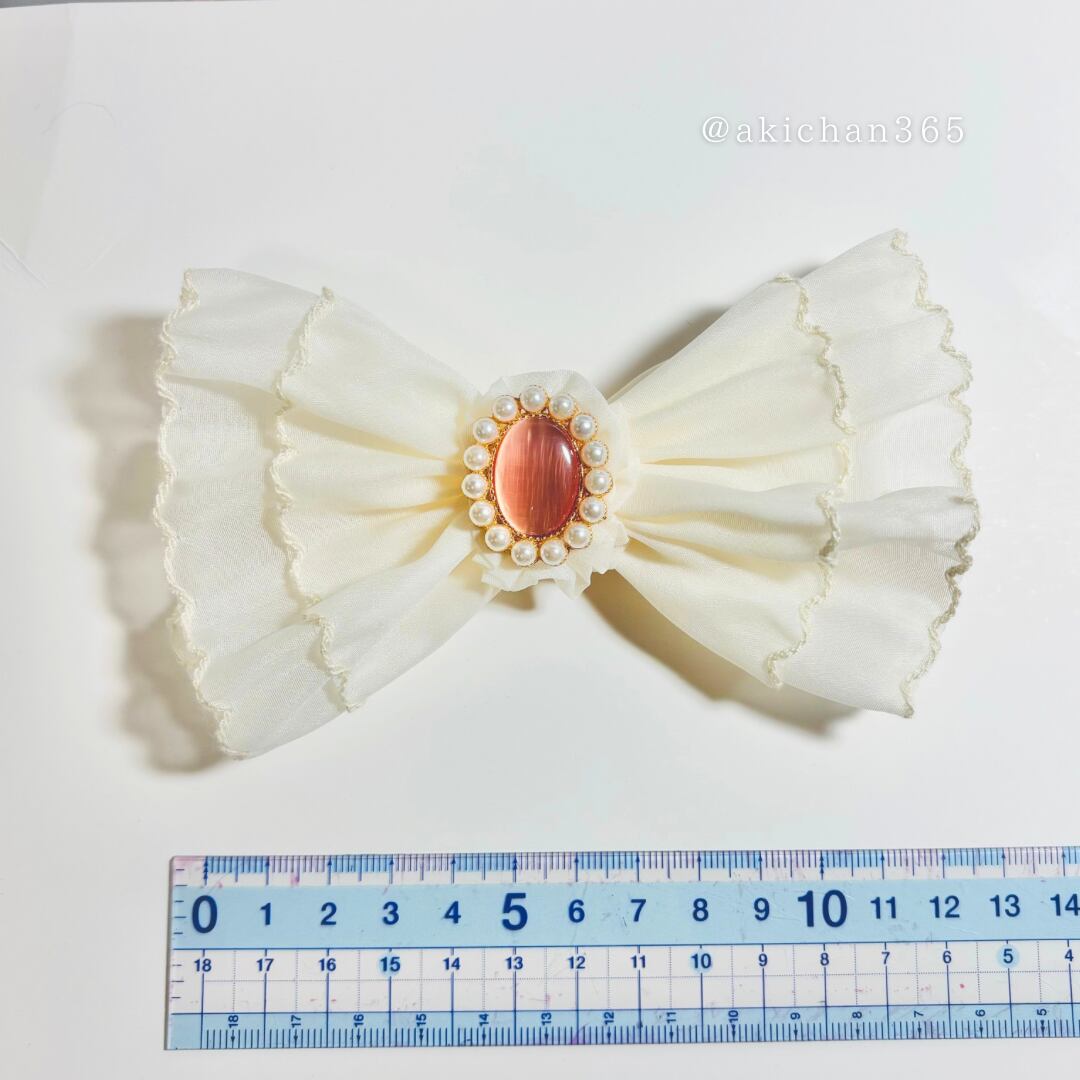 ピンクパールのシフォンリボン/ヘアクリップ、バレッタ、チョーカー、アクセサリー、蝶ネクタイ、リボン、犬、猫