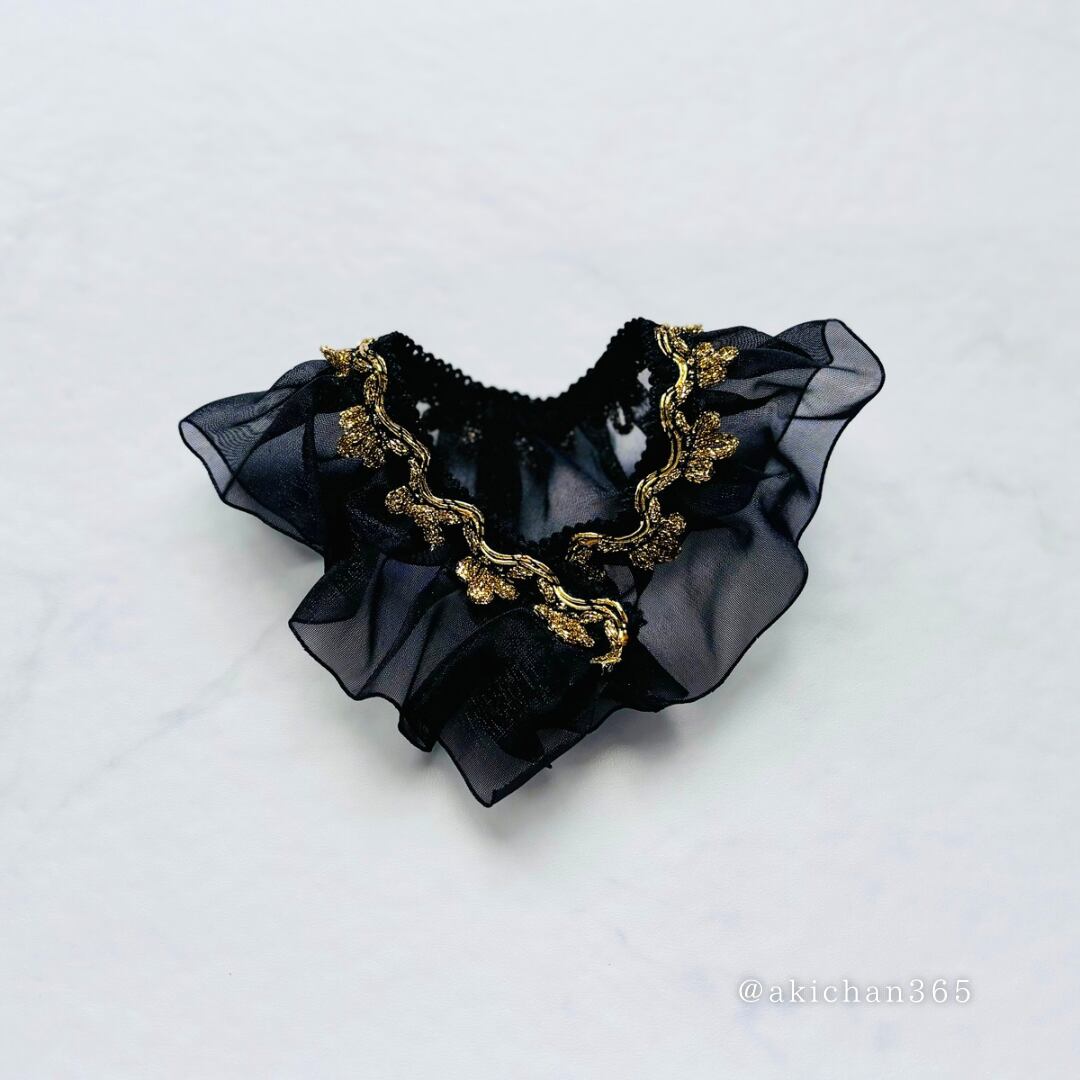 ゴールド刺繍のブラックケープ(つけ襟、ケープ、犬、猫、うさぎ、誕生日、記念日)