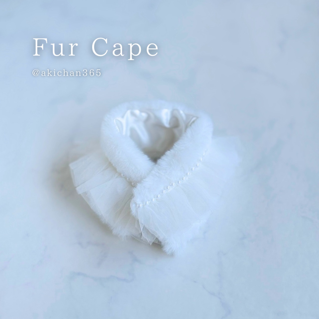 真っ白なふわふわケープにパールとシフォンフリルをあしらえました*.❅·